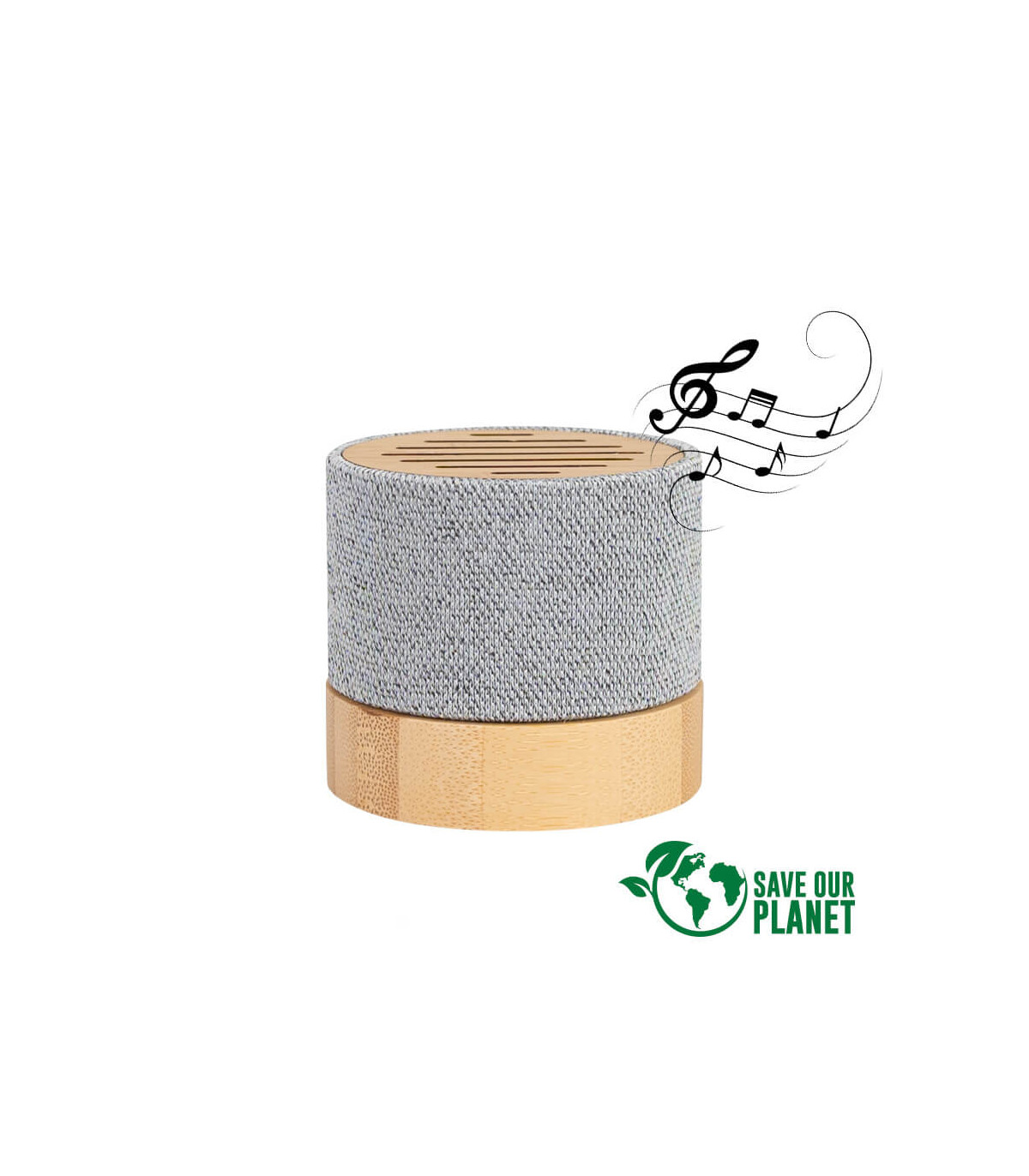 Parlante altavoz de Bamboo y tela reciclada RPET modelo «TRUE».