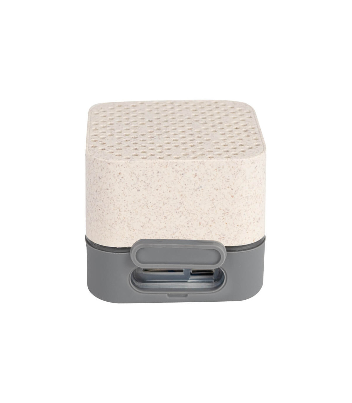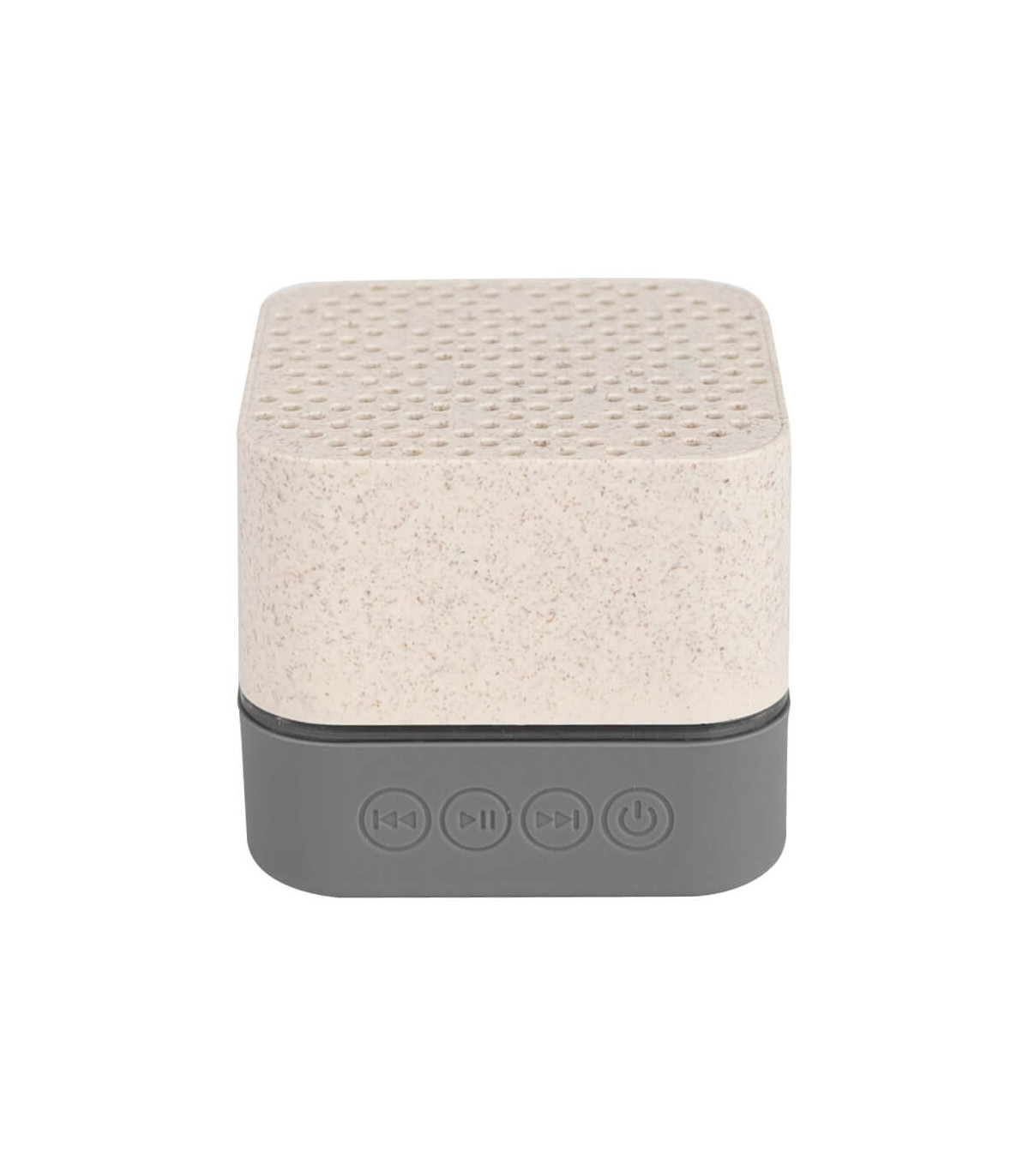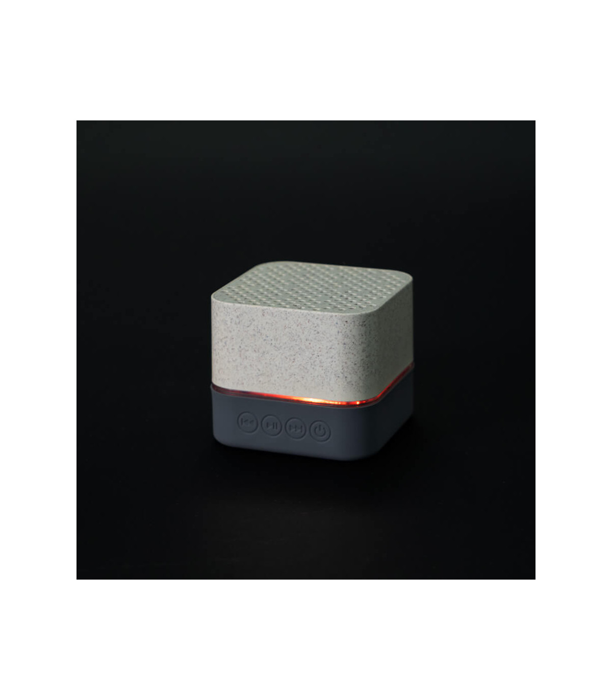 Parlante altavoz de caña de trigo (wheat straw) «LIFE» con juego de luces LED y sección inferior de silicona gris con funciones.