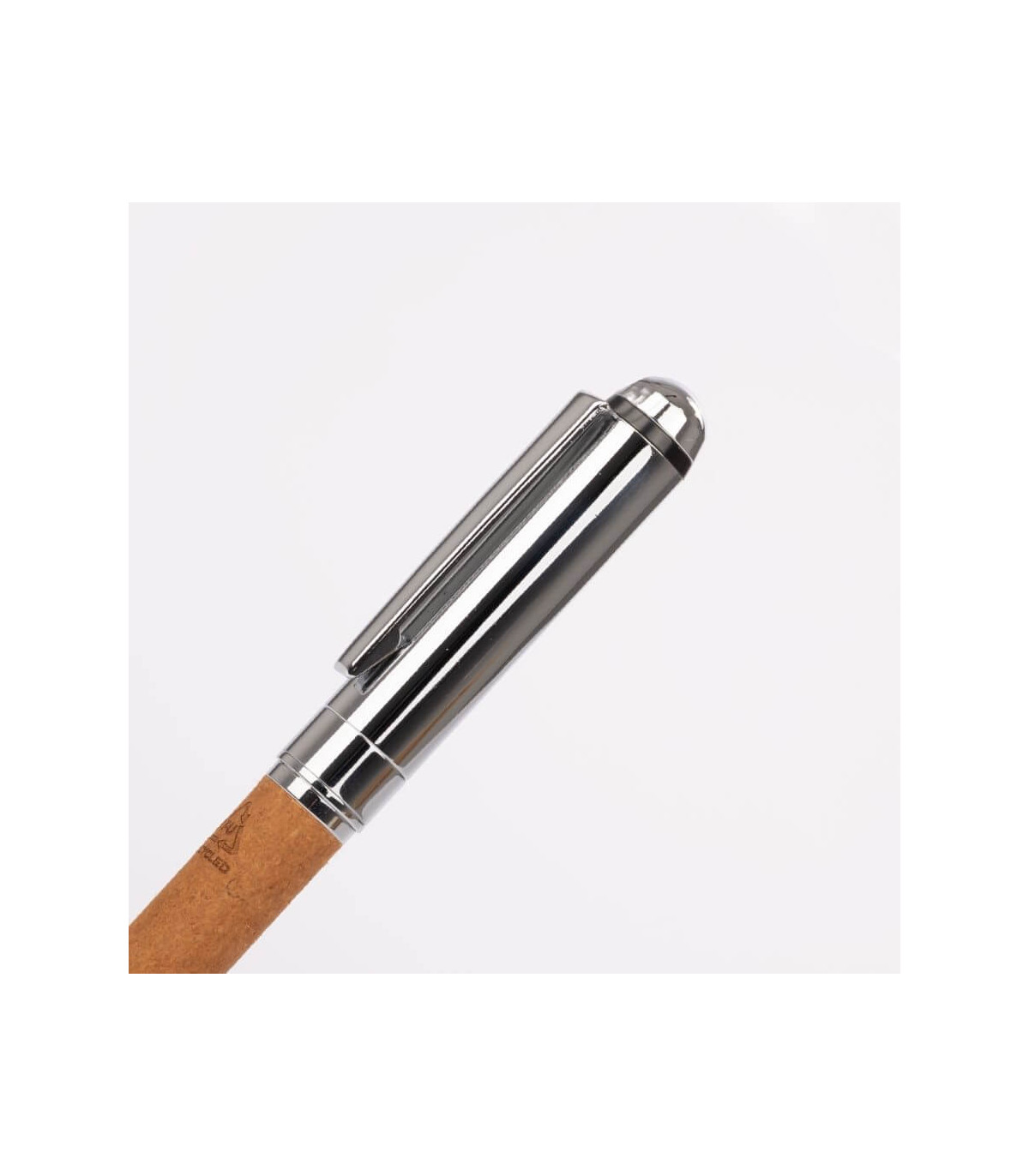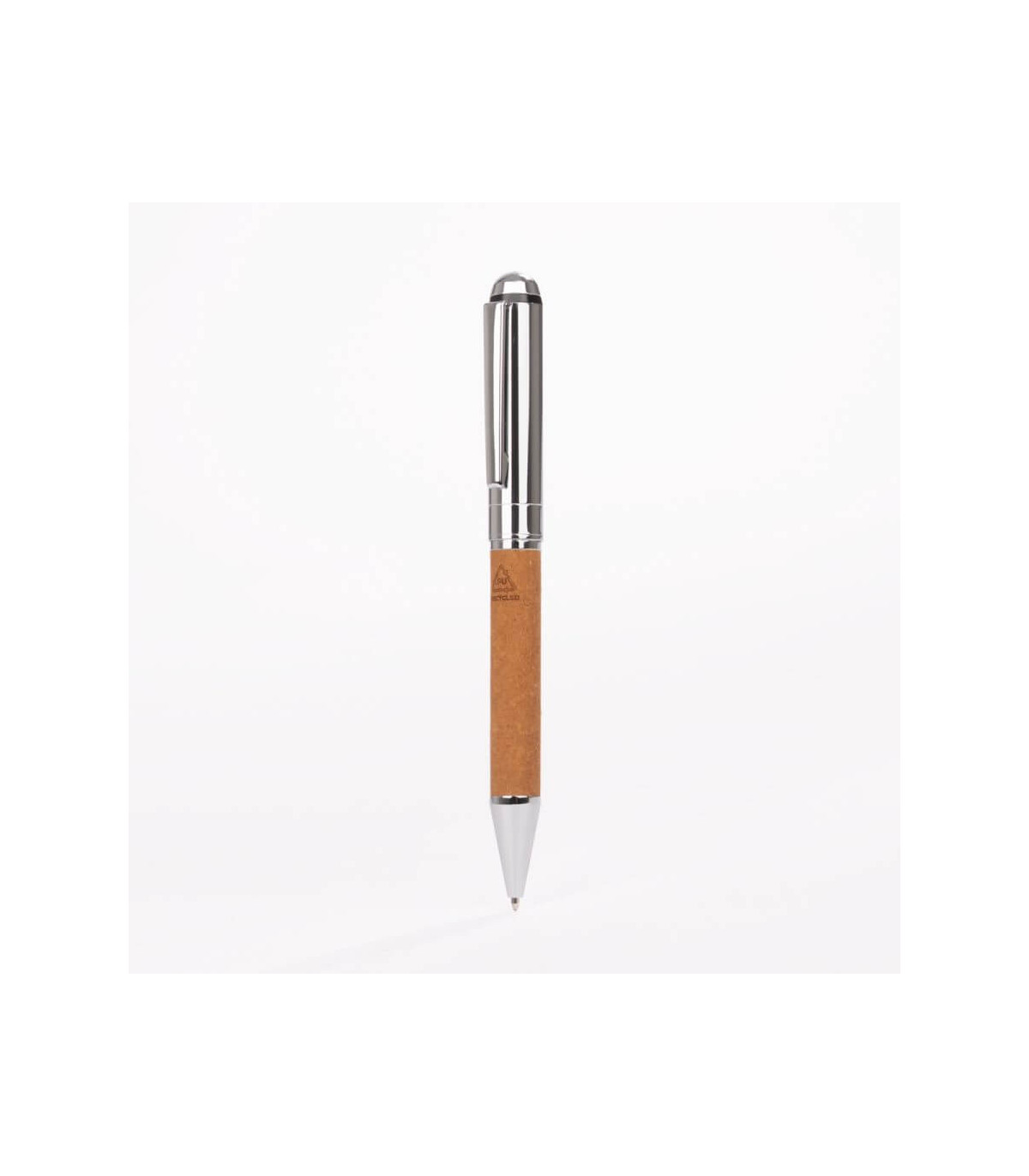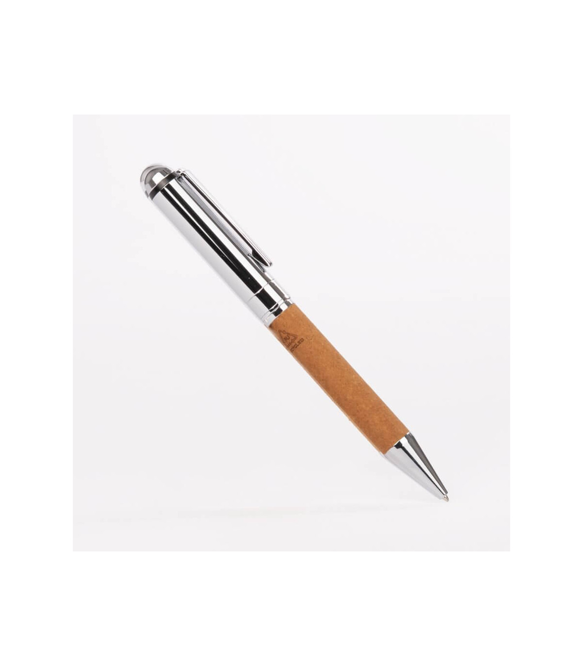 MENDOZA es el equilibrio perfecto entre elegancia atemporal y compromiso sostenible. Su cuerpo metálico con detalles cromados se envuelve en cuero reciclado (PU), aportando una textura sofisticada y una segunda vida a materiales que merecen ser reutilizados. De acción giratoria y acabado en tono marrón, este bolígrafo puede llevar tu logotipo grabado con precisión láser, incluyendo el distintivo R-PU, símbolo de su origen reciclado. MENDOZA es ideal para marcas que valoran la durabilidad, el diseño y el mensaje que transmiten al escribir.