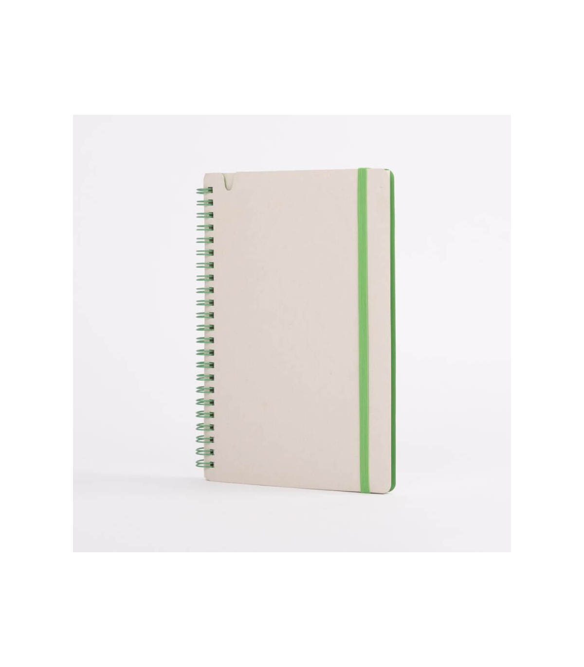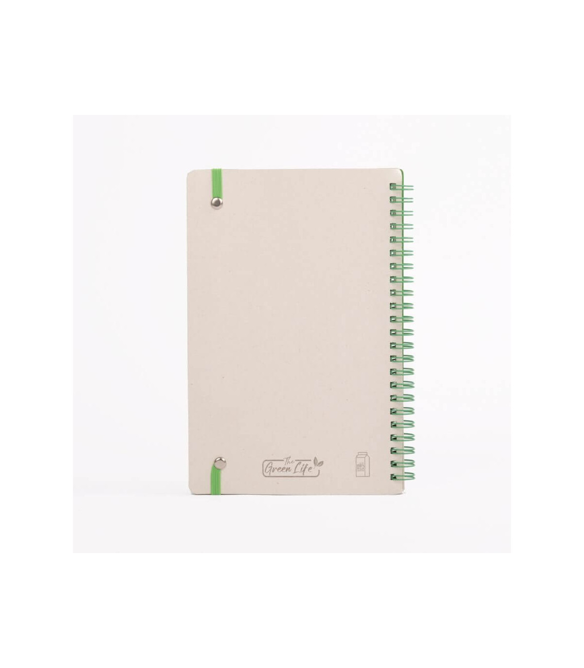 OSORNO es un cuaderno A5 de espiral lateral que convierte el reciclaje en funcionalidad. Con cubierta y páginas elaboradas a partir de cartón de envases lácteos recuperados, este cuaderno ofrece una alternativa consciente para el día a día. Sus 70 hojas de papel blanco con leve tono gris conservan la identidad del material reciclado, mientras la espiral y banda elástica en color verde refuerzan visualmente su espíritu ecológico. OSORNO es práctico, personalizable y perfecto para marcas que desean promover hábitos responsables a través de artículos útiles y con historia.