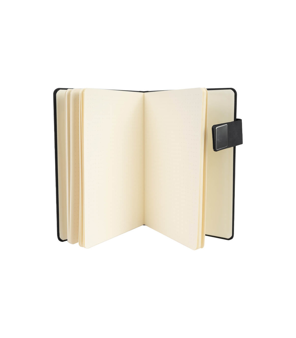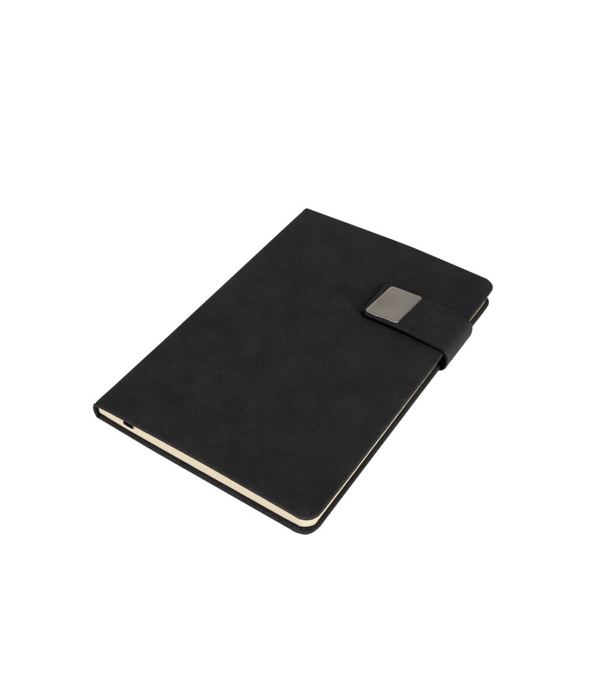 Cuaderno tamaño A5 modelo «OLD», con tapa dura de cartón encerado envejecido mate de 750gsm, con 96 finas hojas gruesas amarillas lineadas de 120g. Interior forrado con funda. Contiene cierre metálico imantado. Y...