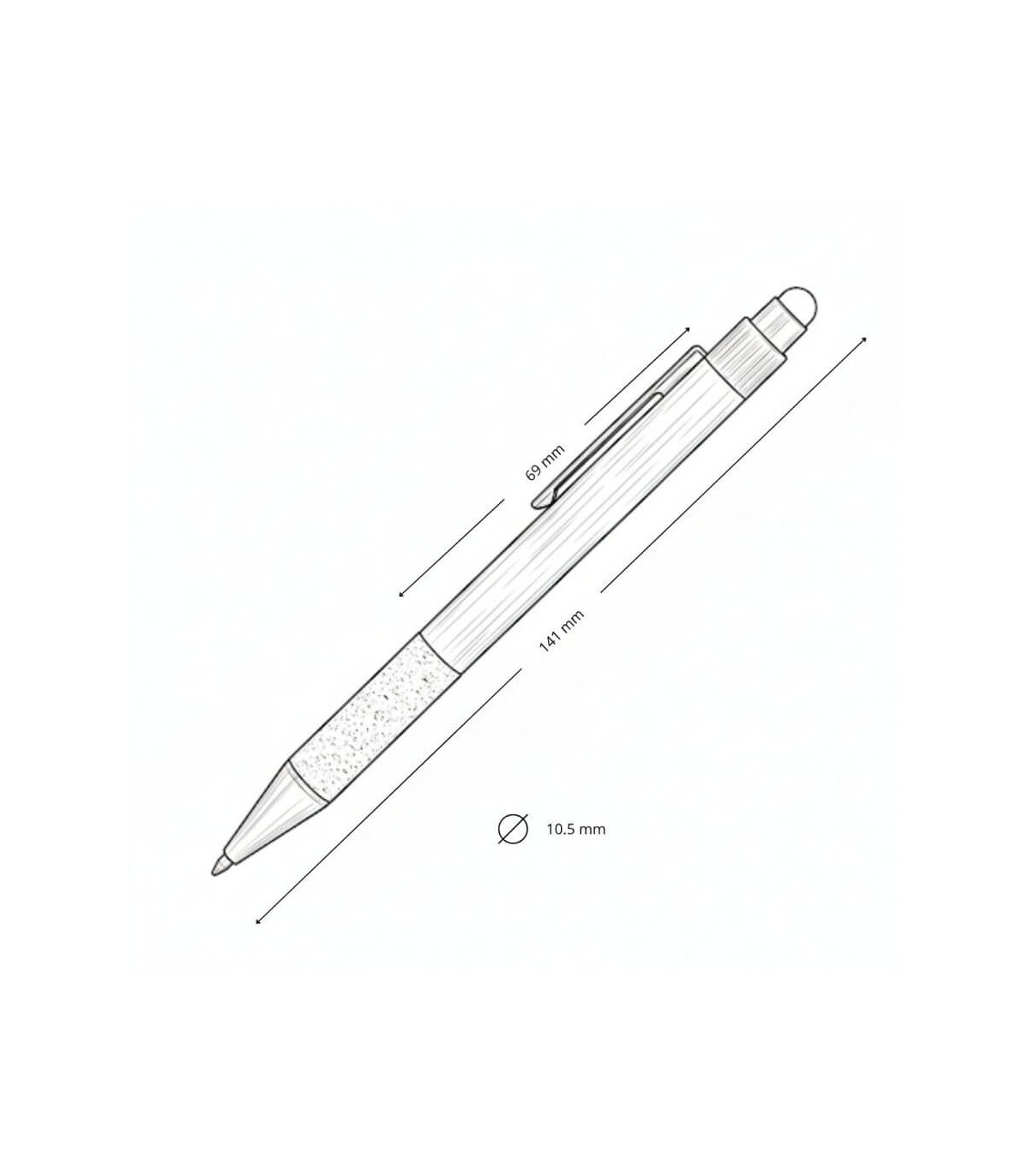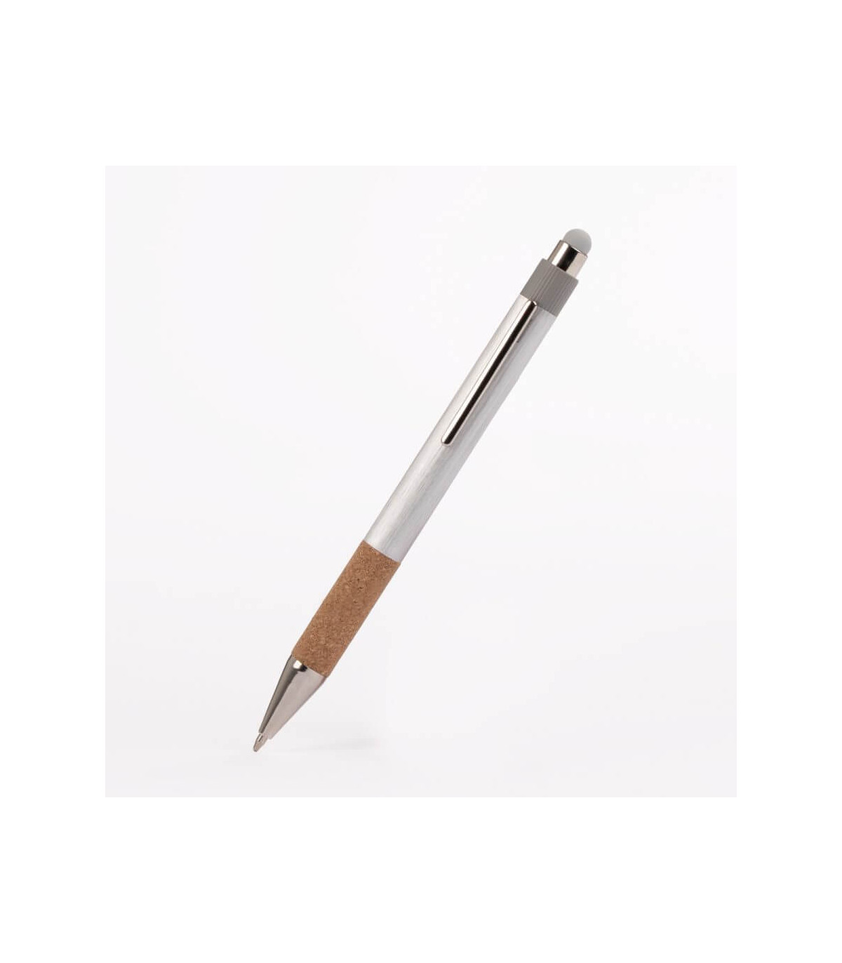 ZERMATT combina diseño moderno con una historia de impacto positivo. Fabricado con aluminio reciclado y grip de corcho natural de origen responsable, este bolígrafo refleja una opción consciente para quienes valoran el diseño y el planeta. Mecanismo de pulsador, detalles cromados y punta touch gris completan un artículo personalizable ideal para marcas que escriben el futuro con coherencia y estilo.