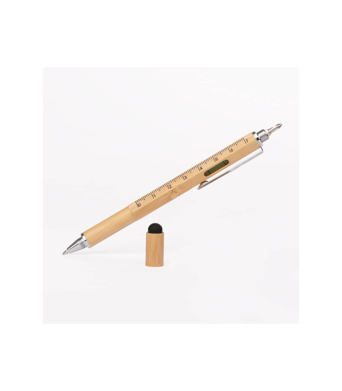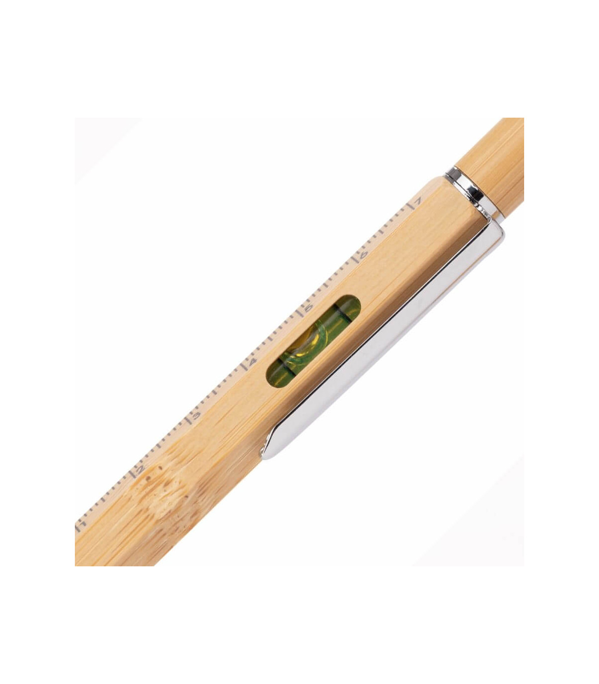 MINDO combina versatilidad y conciencia ecológica en una sola herramienta. Hecho de bambú proveniente de fuentes gestionadas responsablemente, este bolígrafo multifunción incluye regla, nivel de burbuja y destornillador de doble cabeza en un diseño compacto e inteligente. Con detalles cromados y punta touch negra, MINDO es ideal para personalizar y regalar a quienes valoran soluciones prácticas y sostenibles.