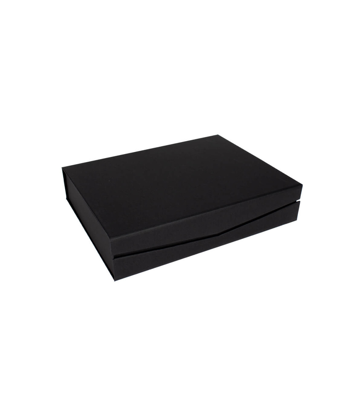 •Presentación: Caja de cartón forrado negro con cierre imantado, interior acolchado de espuma y tela poliéster satinado negro, con troquel.