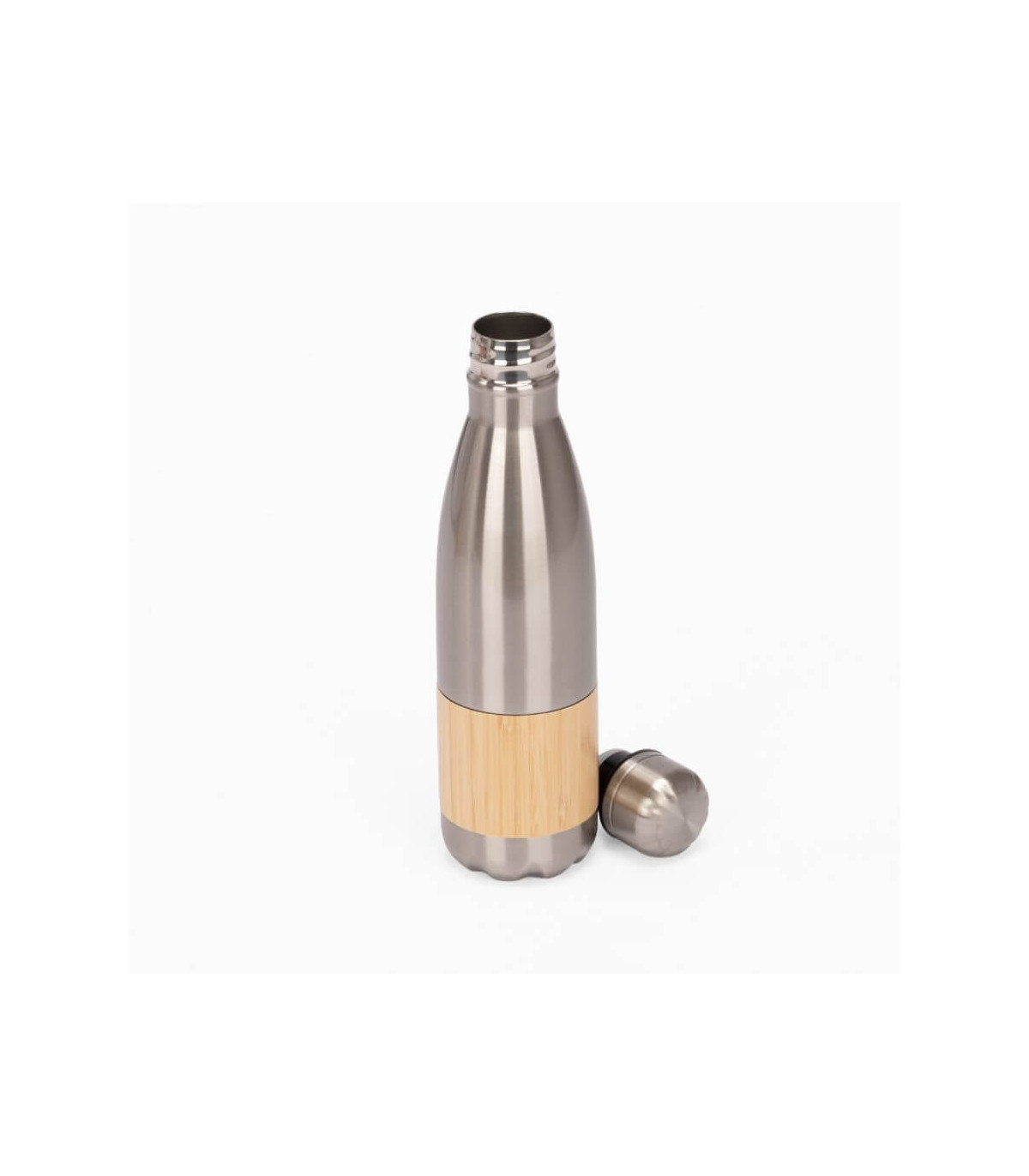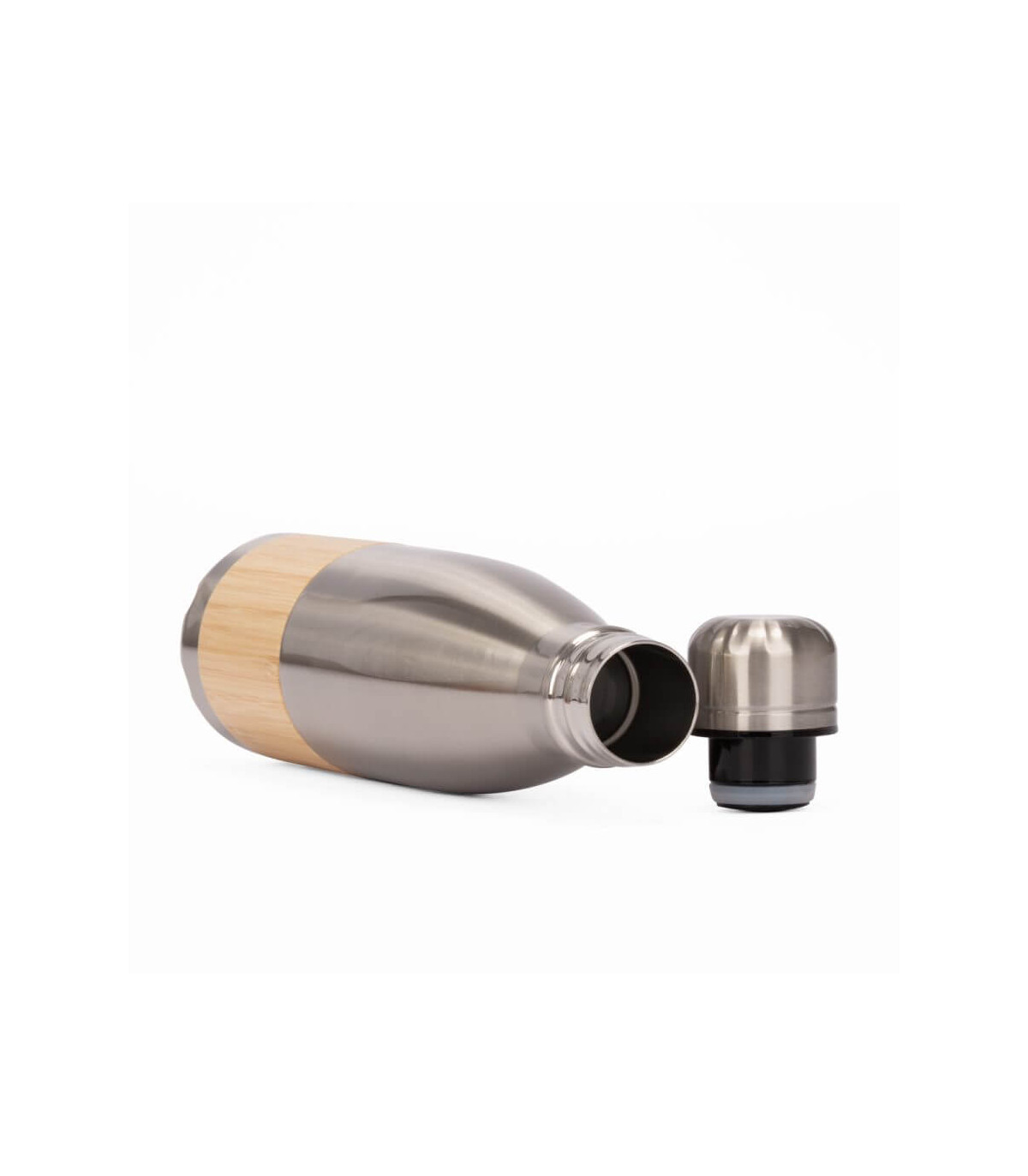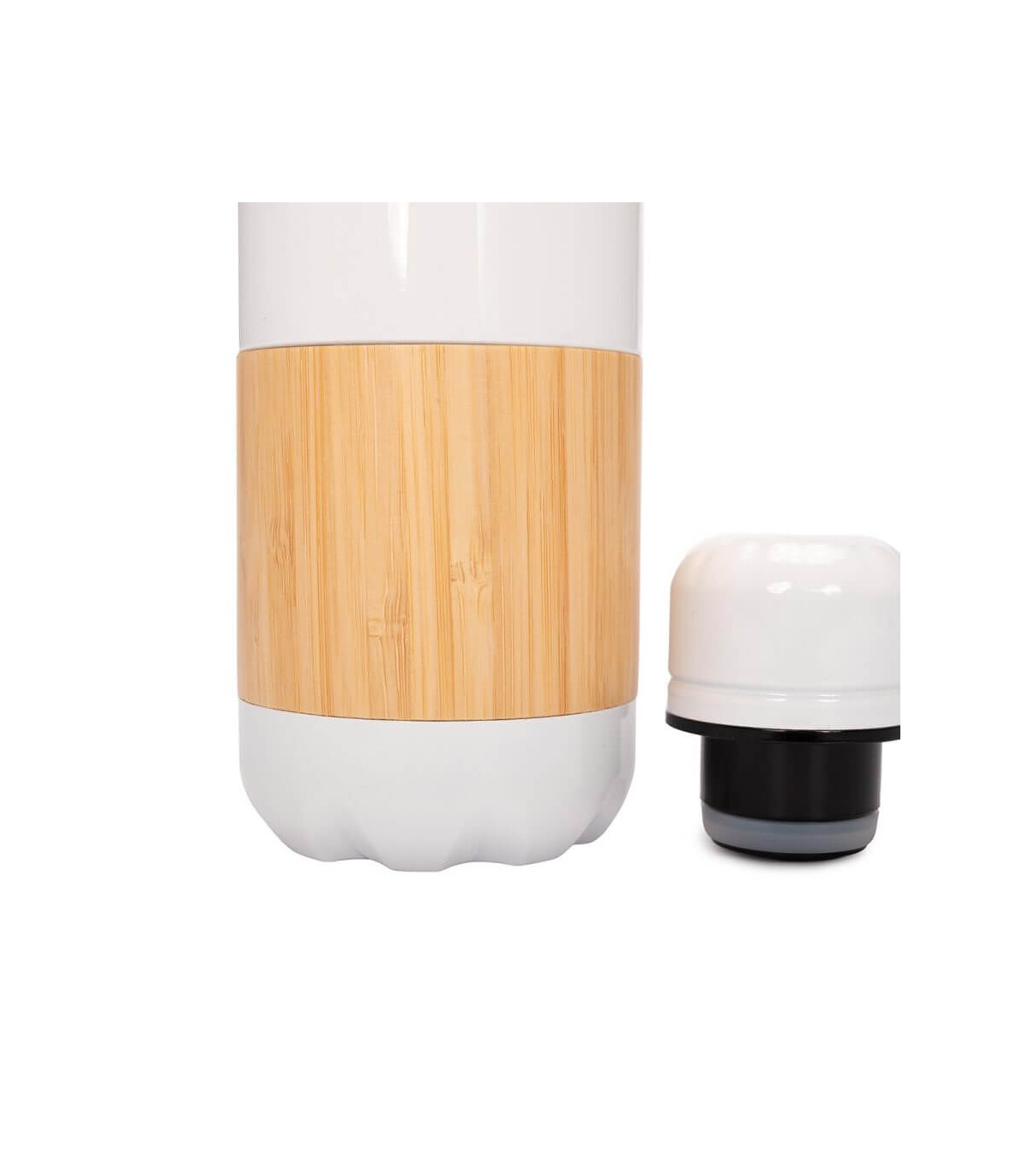 ESTOCOLMO es una botella de acero inoxidable reciclado con un diseño limpio y atemporal. Con capacidad de 500 ml y doble pared para conservar la temperatura de tus bebidas, combina practicidad y elegancia en cada detalle. Su cuerpo blanco brillante y el elegante recubrimiento de bambú aportan una estética natural que conecta con hábitos responsables. La tapa de rosca metálica asegura un cierre hermético y duradero. ESTOCOLMO es ideal para marcas que desean proyectar sobriedad, sostenibilidad y estilo con cada sorbo.
