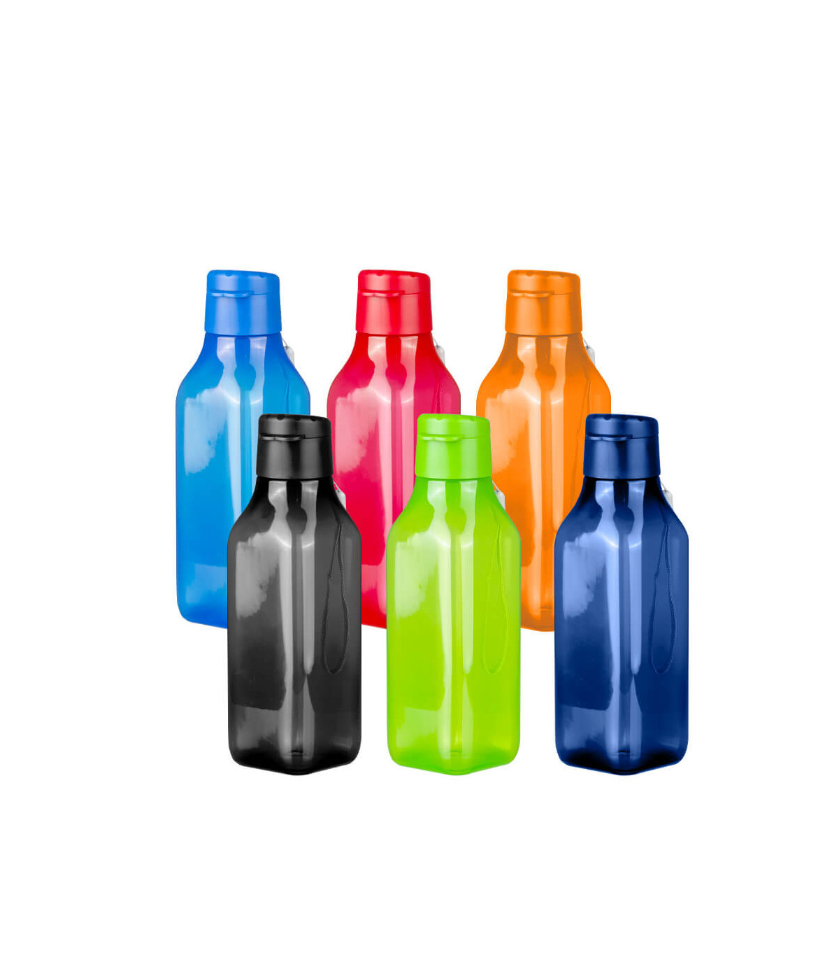Botella Plástica PP deportiva de 430ml. modelo «UMBRIA». Sólo para líquidos fríos. Contiene tapa plástica de fácil apertura con boquilla ancha para beber. Incluye lanyard para colgar. Producto libre de BPA. Presentación en caja de cartón negro y bolsa de polipropileno transparente.