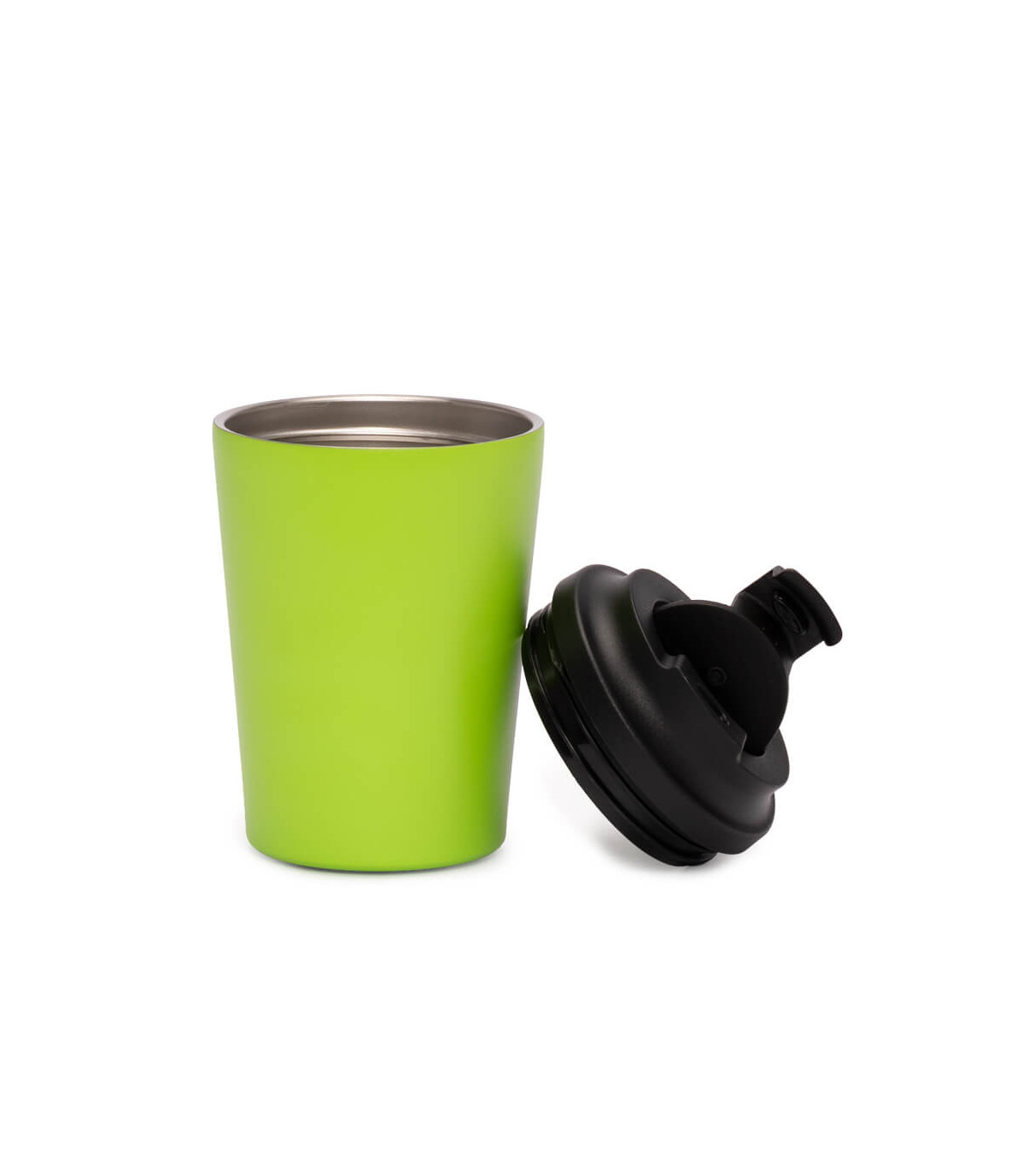 Ø 8,9 cm x 15 cm. Capacidad: 350 ml. Polipropileno y Acero inoxidable. Mug doble pared. Interior de acero inoxidable 304 y exterior de PP con acabado mate. Tapa de PP con anillo de silicona y seguro antiderrame. Base...