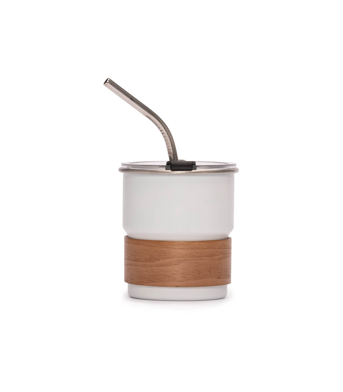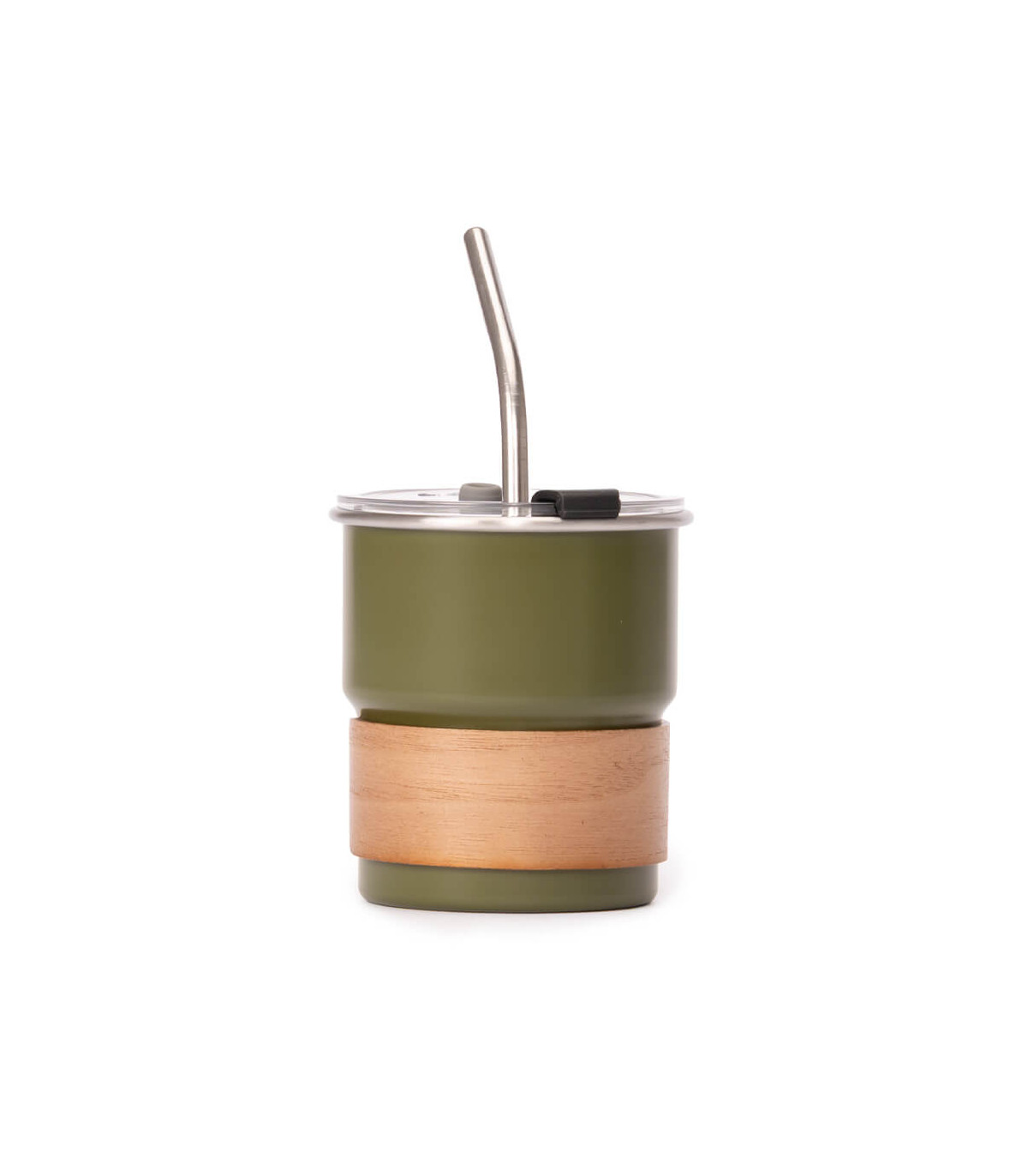 Vaso térmico metálico «MATE» doble pared aislante, cubierta de Polipropileno (PP) acabado mate, interior Acero inoxidable 304 SS, exterior Acero inoxidable 201 SS. Capacidad 300ml. Producto BPA FREE, para el contacto con líquidos y alimentos. Incluye bombilla (cuchara) de Mate de Acero inoxidable. Presentación en plástico burbuja + caja de cartón laminado negro.