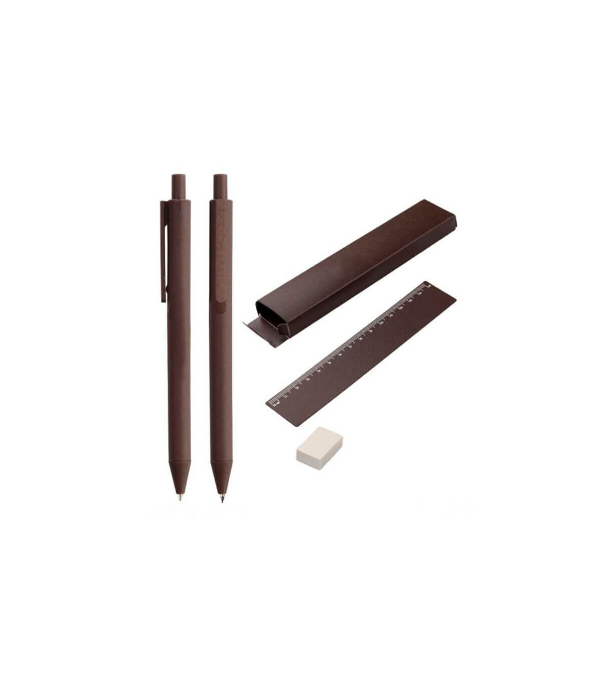 MINAS GERAIS transforma el escritorio en un espacio con propósito. Este set de papelería, elaborado a partir de fibra de café reciclada, incluye bolígrafo, lápiz, regla con impresión métrica, goma de borrar y estuche del mismo material con el mensaje “The Green Life”. Cada elemento refleja una mirada hacia la sostenibilidad sin perder funcionalidad. El diseño compacto y el mensaje grabado en su caja lo convierten en un obsequio ideal para espacios educativos o entornos de trabajo responsables. Personalízalo y haz que tu marca inspire creatividad y conciencia ambiental desde el primer trazo