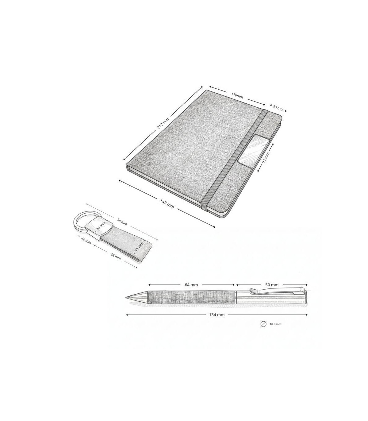 KALANI combina funcionalidad y diseño en un set compuesto por bolígrafo metálico y llavero revestidos en tela RPET gris. Cada elemento está cuidadosamente empacado en una caja negra que proyecta sobriedad y...