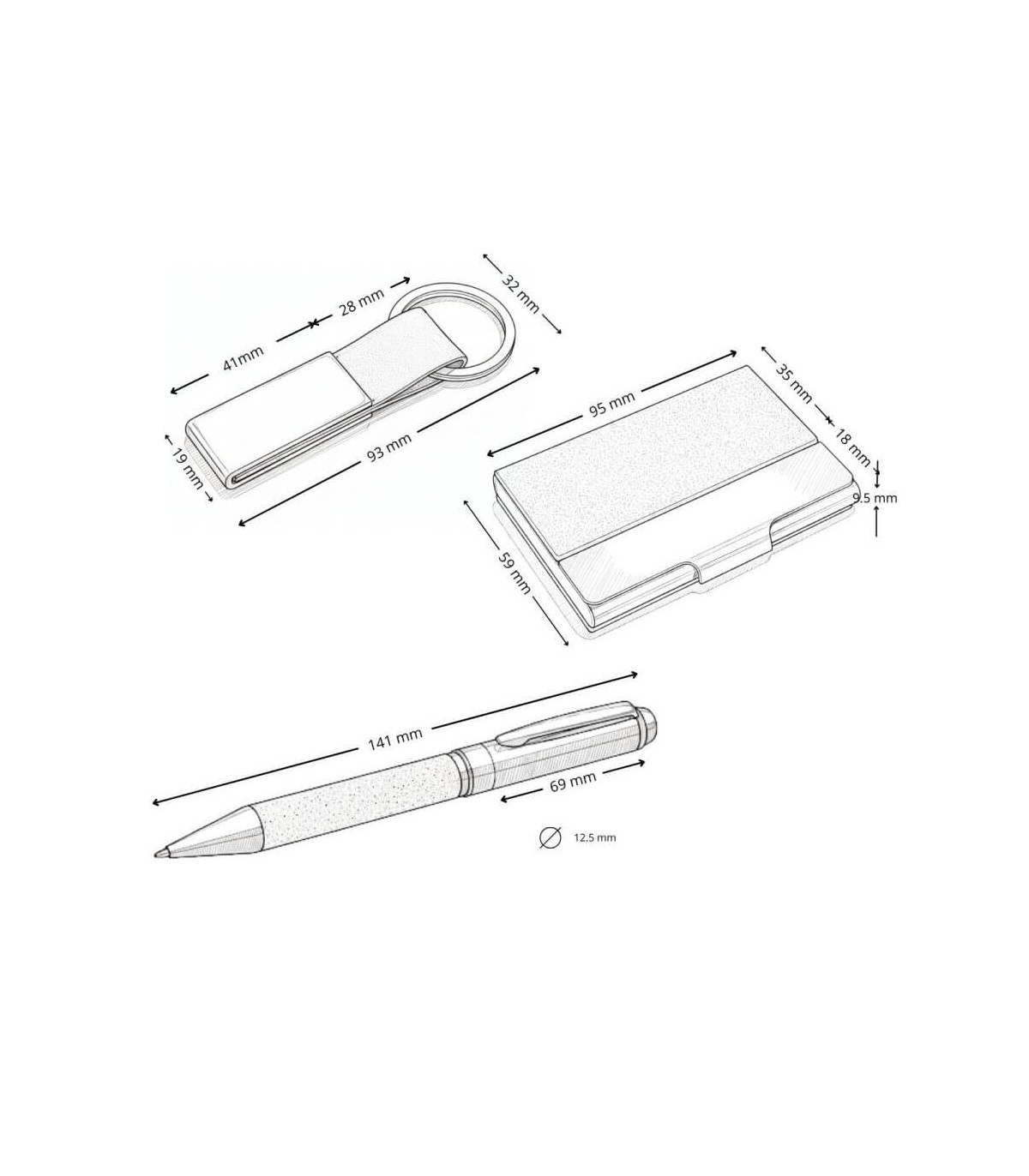 KALANI combina funcionalidad y diseño en un set compuesto por bolígrafo metálico y llavero revestidos en tela RPET gris. Cada elemento está cuidadosamente empacado en una caja negra que proyecta sobriedad y...