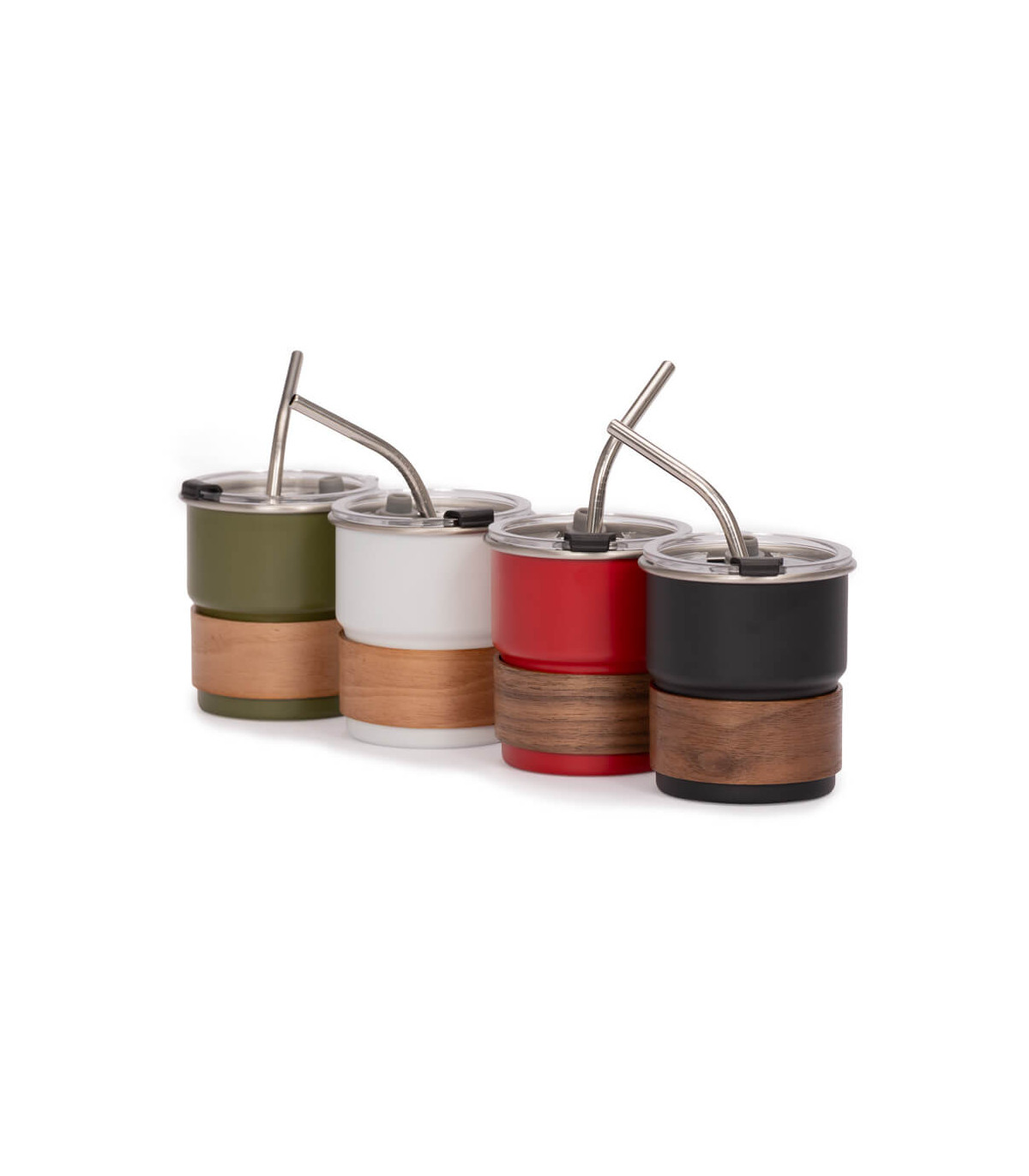 Vaso térmico metálico «CAMP» doble pared aislante, cubierta de Polipropileno (PP) acabado mate, interior Acero inoxidable 304 SS, exterior Acero inoxidable 201 SS. Capacidad 300ml. Producto BPA FREE, para el contacto con líquidos y alimentos. Incluye bombilla de Acero inoxidable y grip (mango) aislante de madera. Presentación en bolsa de PP translúcido + caja de cartón laminado negro.
