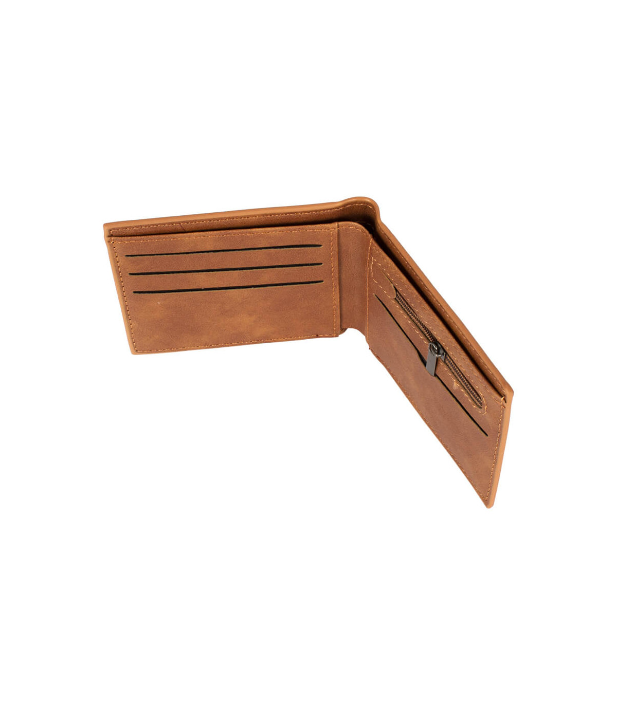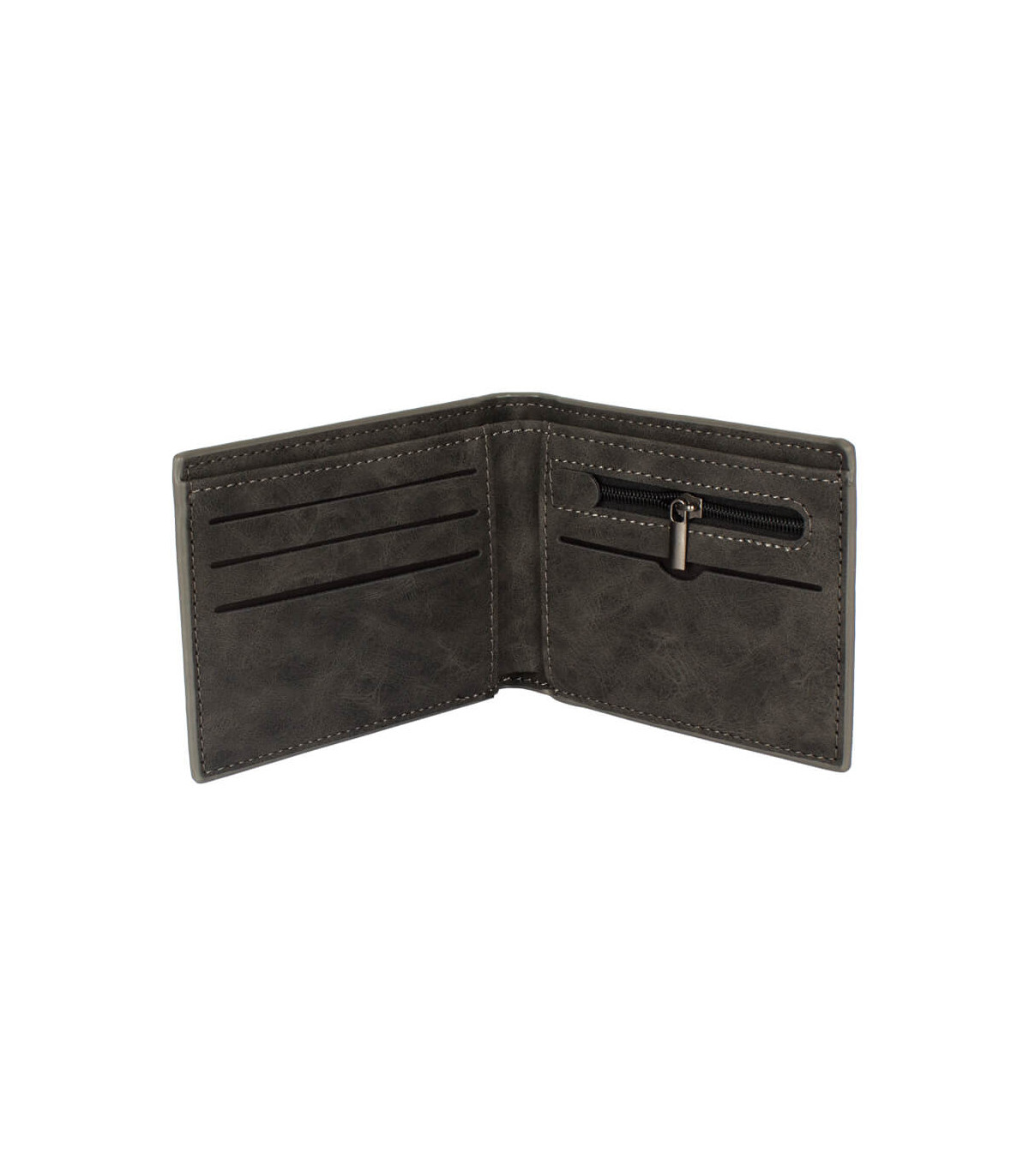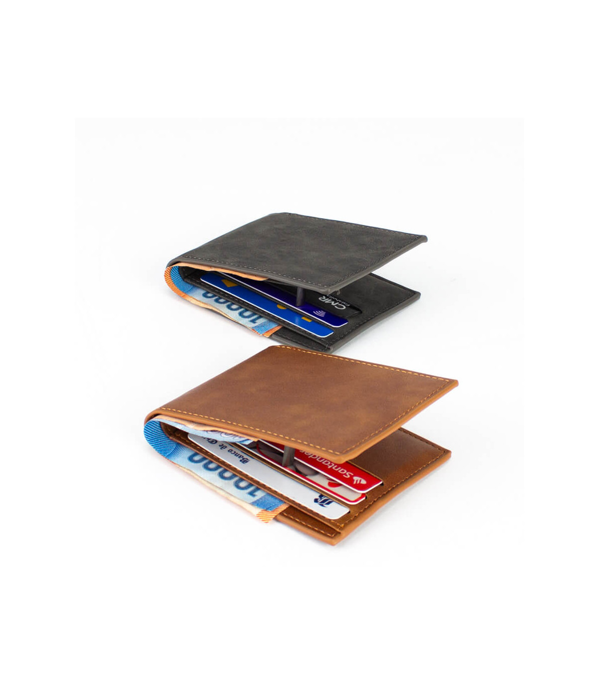 Billetera de eco-cuero, formato vertical, modelo «LAM». Contiene 5 compartimentos interiores. Presentación en bolsa frozen y caja de cartón forrado negro opaco.