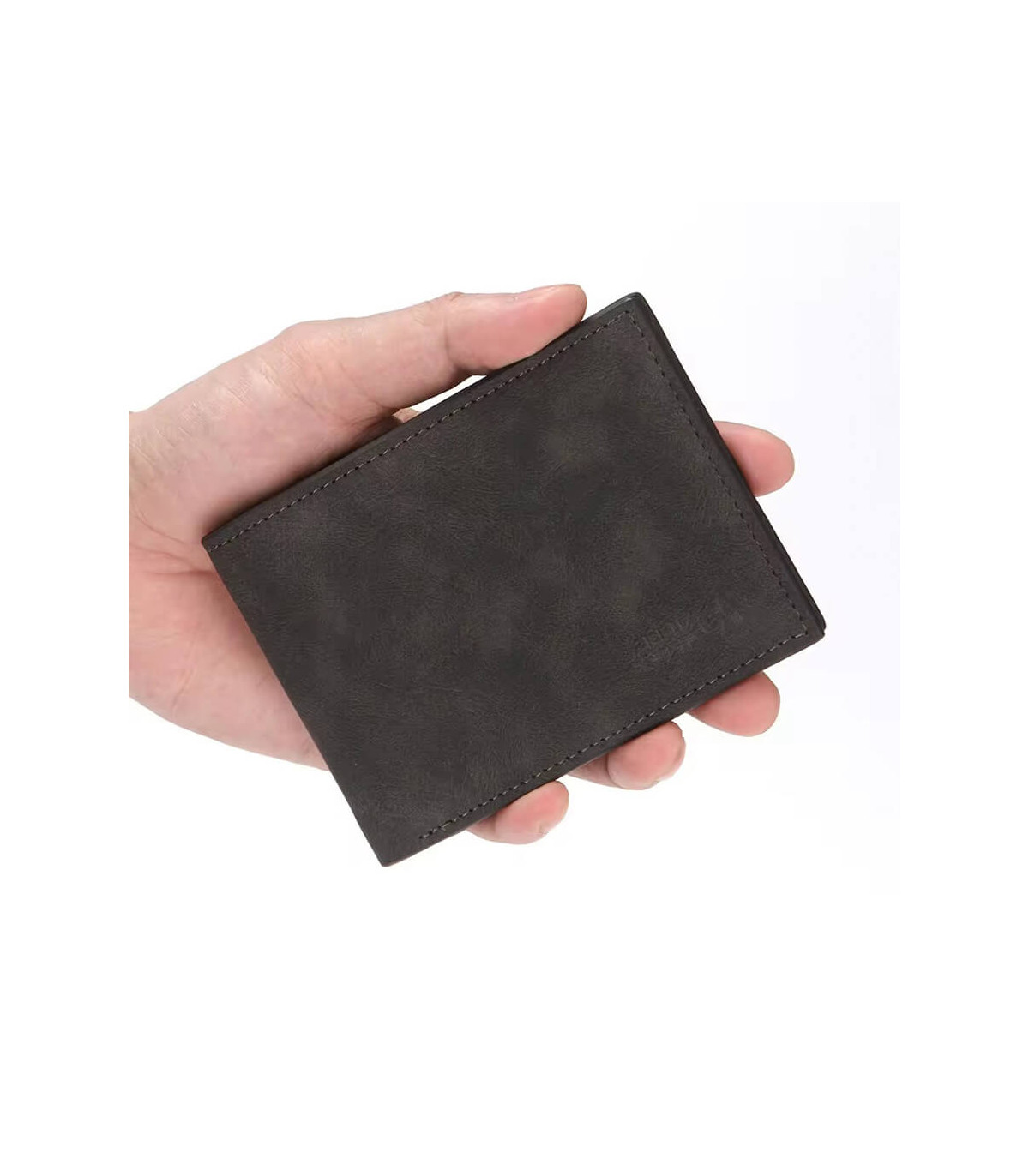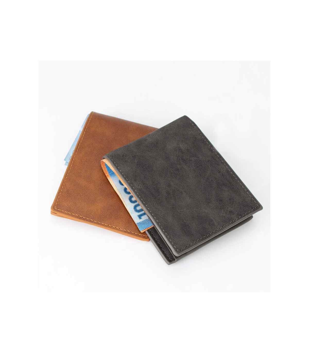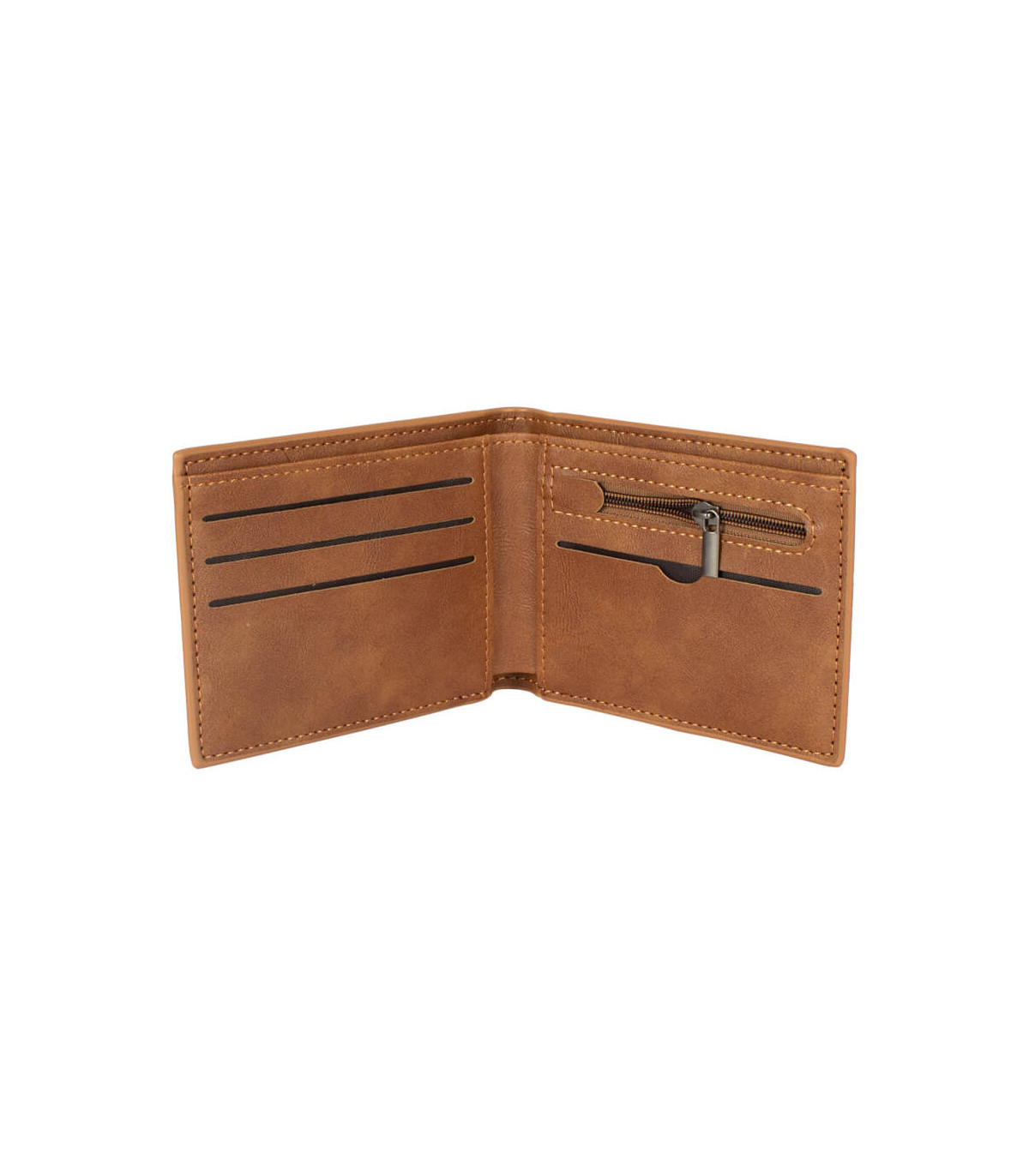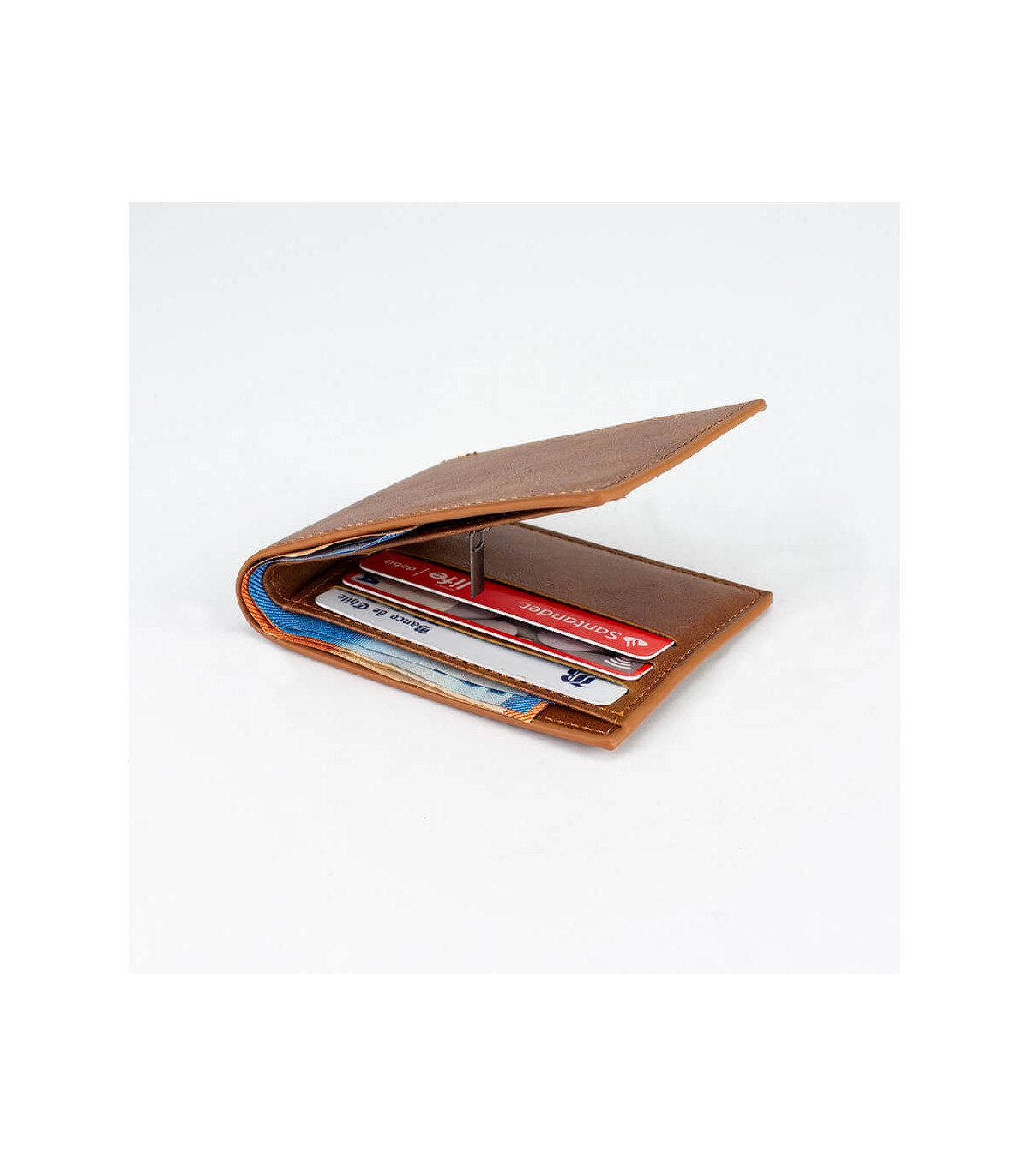 Billetera de eco-cuero, formato vertical, modelo «LAM». Contiene 5 compartimentos interiores. Presentación en bolsa frozen y caja de cartón forrado negro opaco.